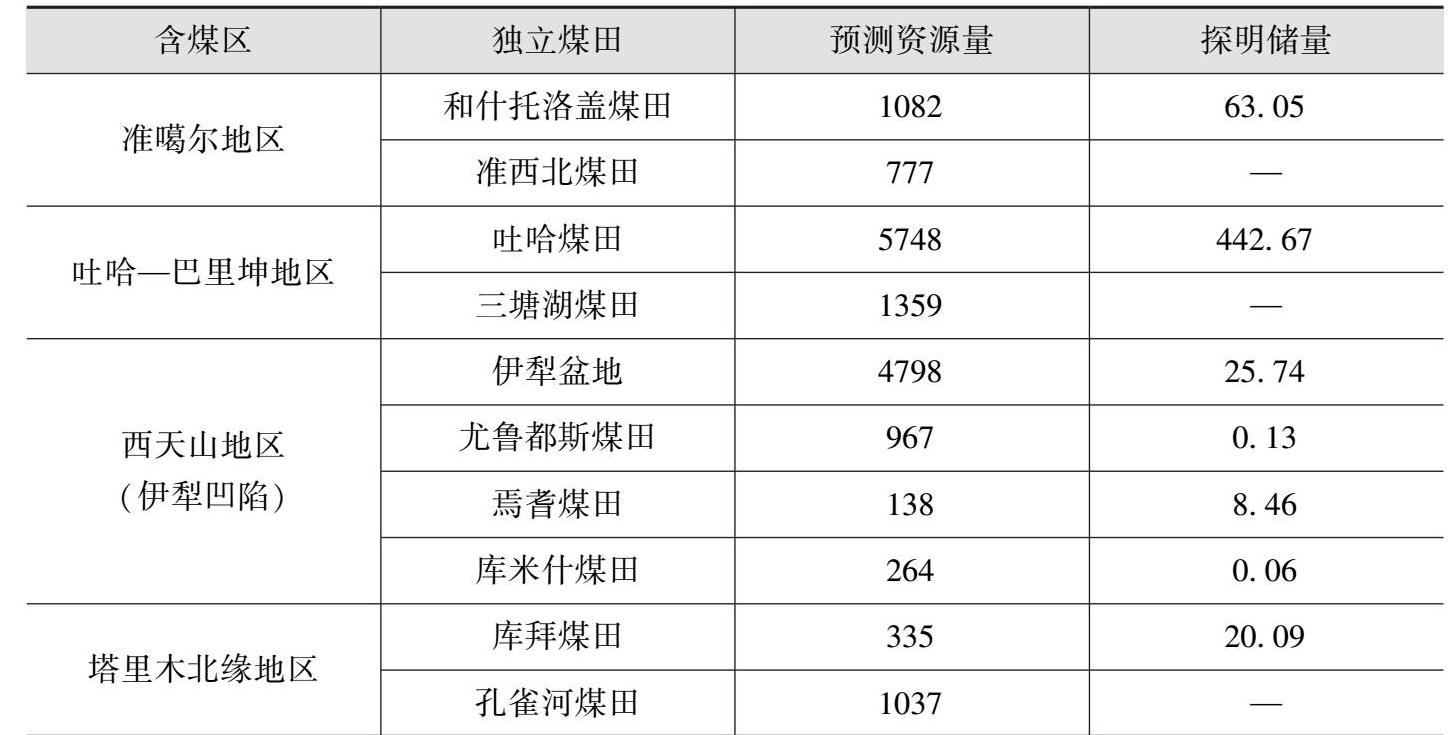 表1-7 新疆煤炭资源主要富集区分布情况 单位:亿吨