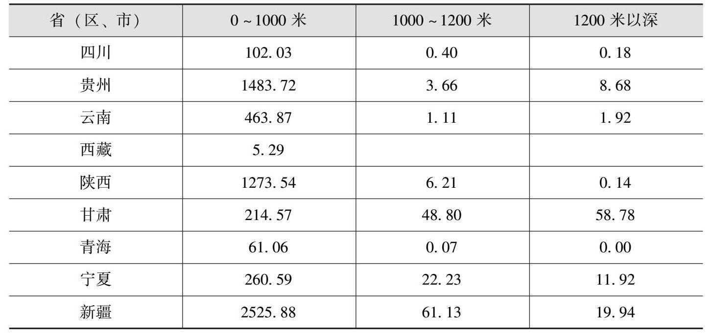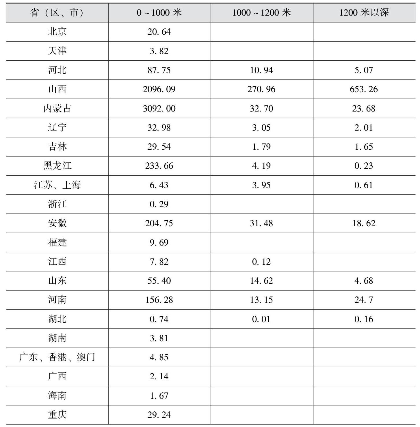 表1-4 我国煤炭资源埋深储量统计 单位:亿吨