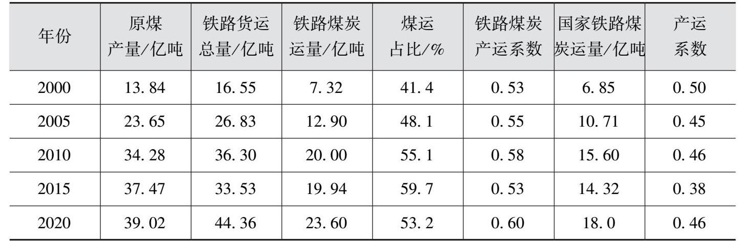 表1-8 2000—2020年全国煤炭铁路运输情况