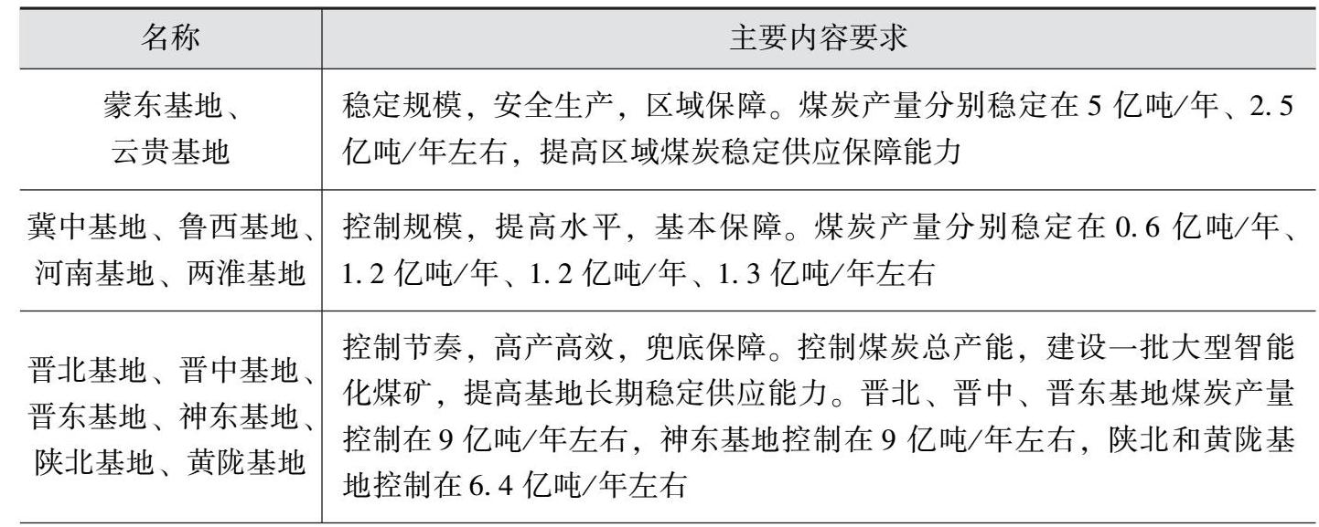 “十四五”时期我国主要煤炭生产基地建设要求如表1-6所示。