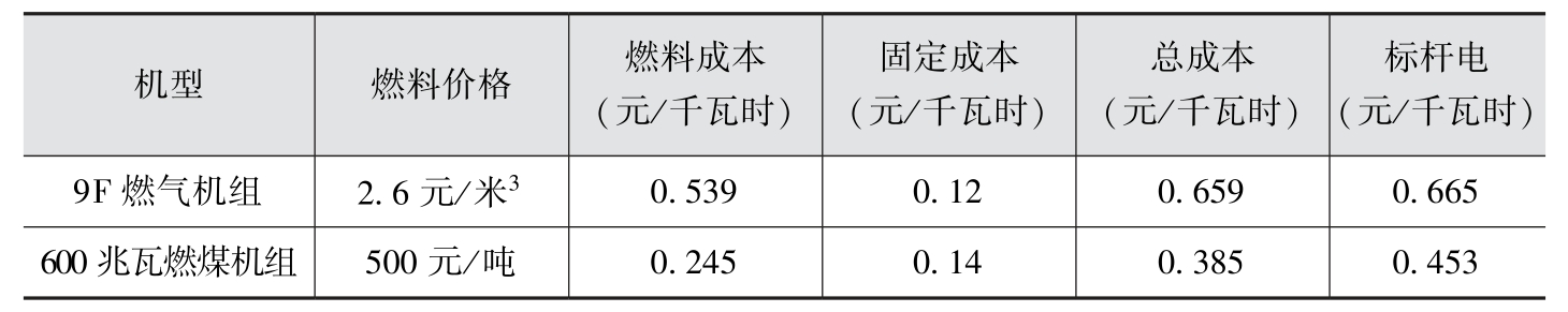 表3 燃气机组与燃煤机组发电成本对比
