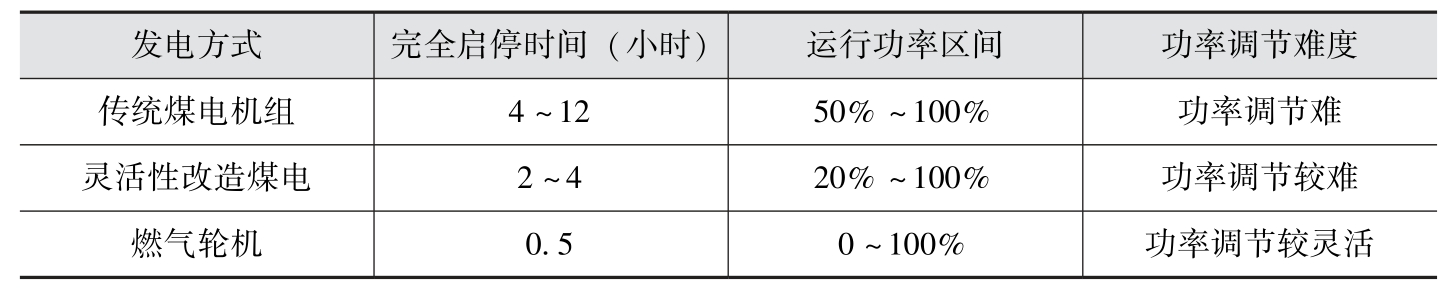 从技术和经济两个角度来看,大规模储能并不现实,成本也高。因此,灵活性改造是提高绿色能源电力消纳的首选方向。从主流机组的技术特性看,燃气轮机发电机组无疑是最好的灵活性电力模式(见表2)。
