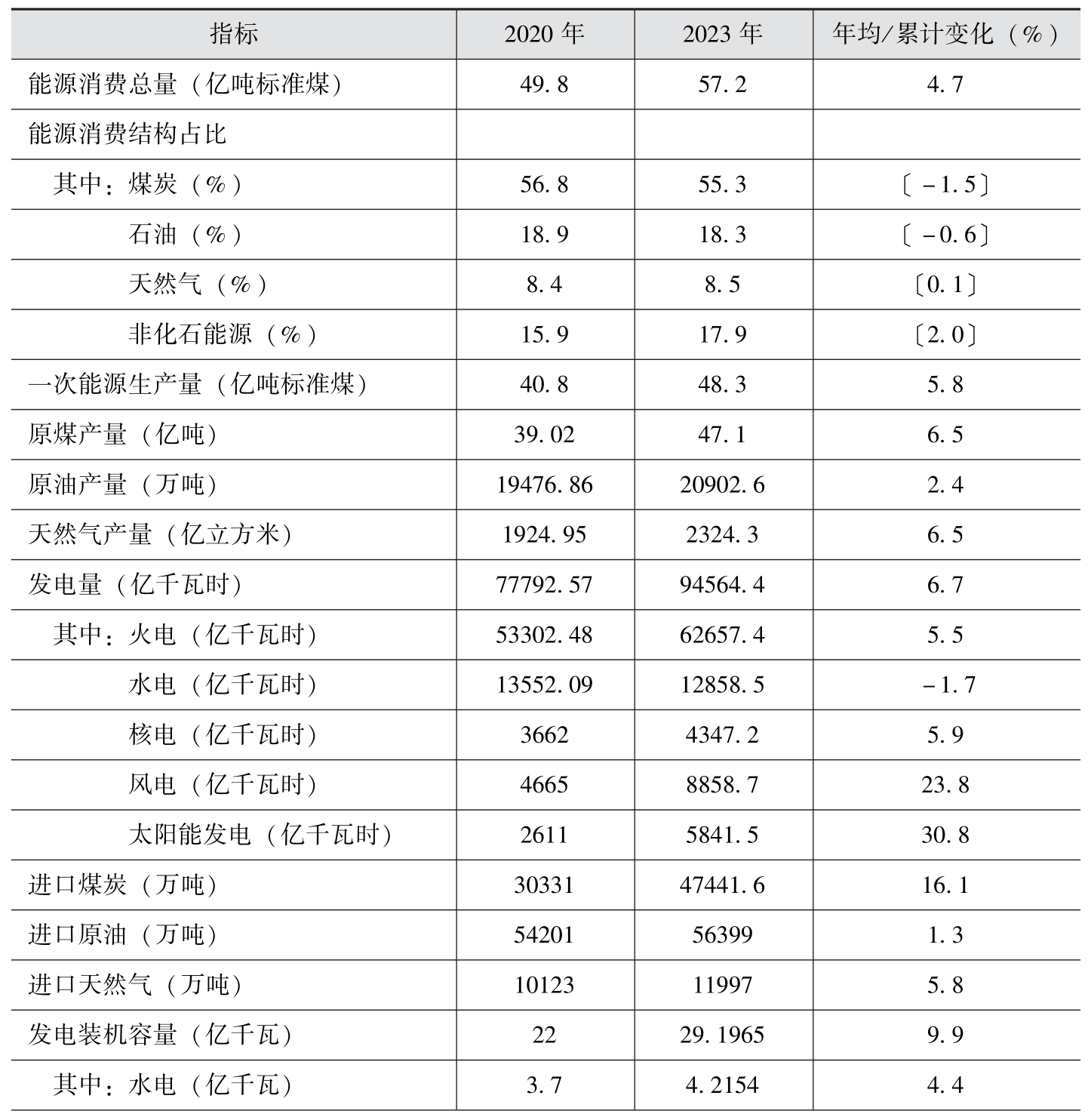 资料来源:①国家统计局,《中国统计年鉴2021》。②国家统计局,中华人民共和国2023年国民经济和社会发展统计公报[EB/OL].https://www.gov.cn/lianbo/bumen/202402/content_6934935.htm.③中国电力企业联合会.2020年中国电力工业经济运行报告[EB/OL].http://lwzb.stats.gov.cn/pub/lwzb/zxgg/202107/W020210723348607080875.pdf.