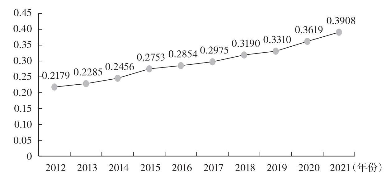 图2-5 2012—2021年黄河流域农作物种业高质量发展水平变化趋势