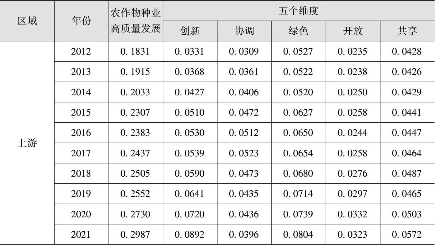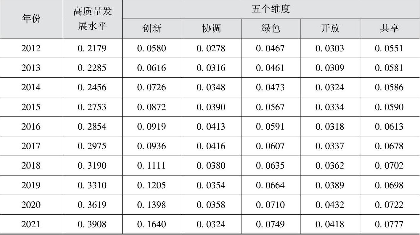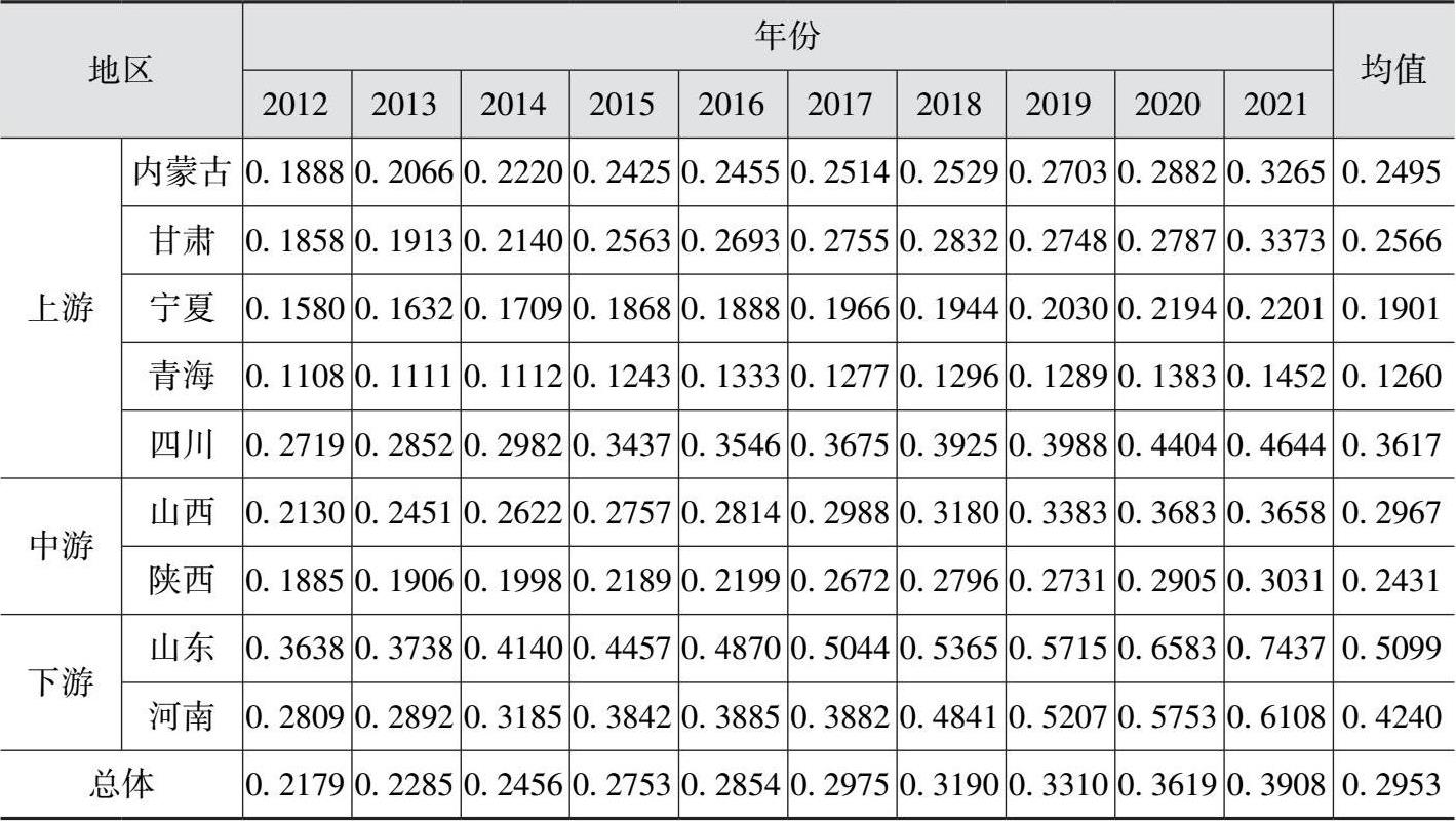 表2-4 2012—2021年黄河流域农作物种业高质量发展各维度水平值