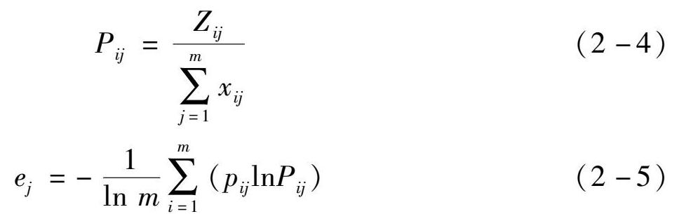 计算第 j 项指标下第 i 个省份占该指标的比重 P ij ,并计算第 j 项指标的熵值 e j ,计算公式分别如下: