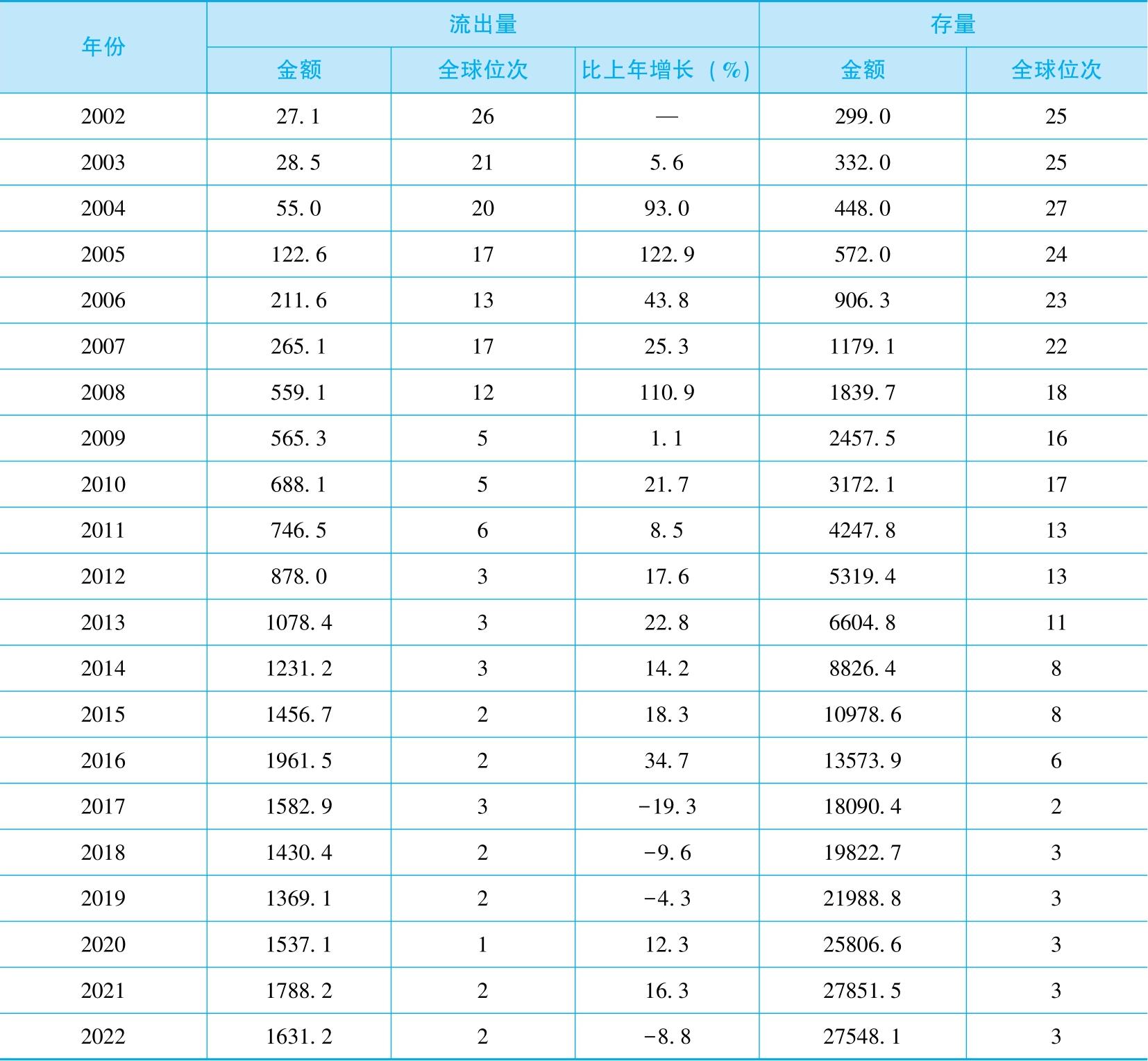 表2-1 中国建立《对外直接投资统计制度》以来历年统计结果 单位:亿美元
