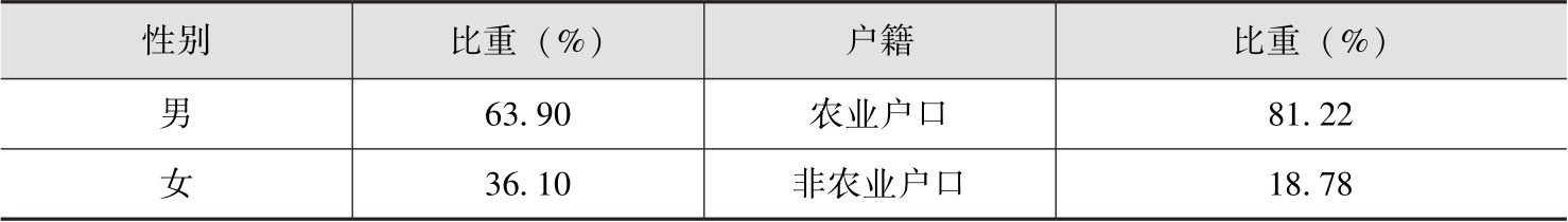 表3-4 青海省各市州农牧民非农就业调查问卷中受访者性别与户籍状况
