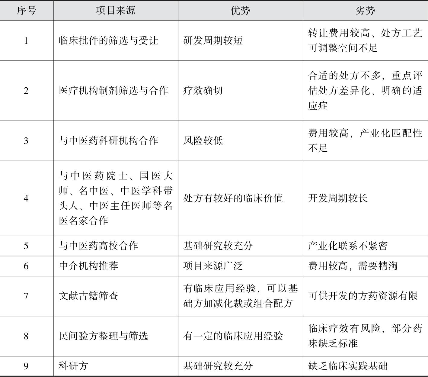 中药新药项目来源途径较多,来源不同其优劣势也各不相同,见表5-4。