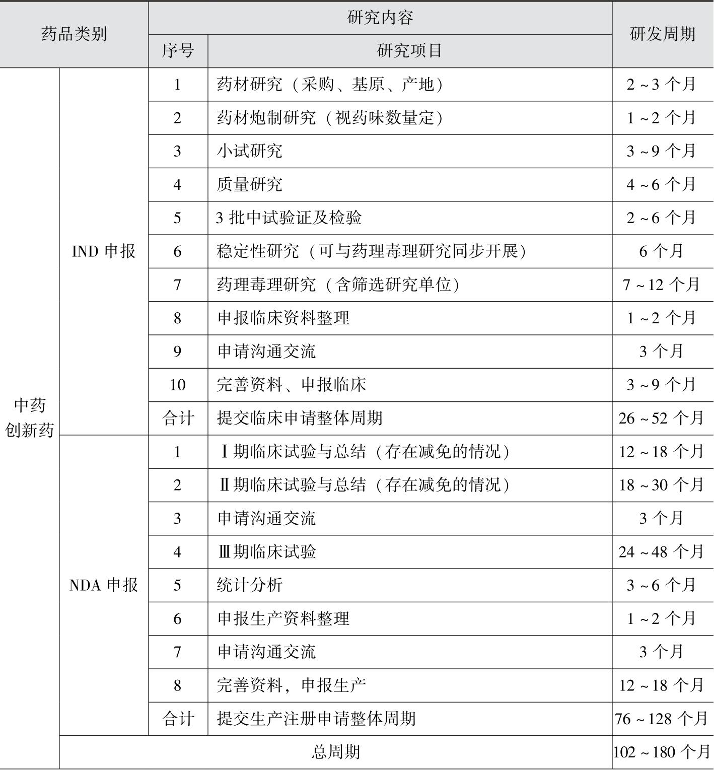 表5-6 中药项目开发周期