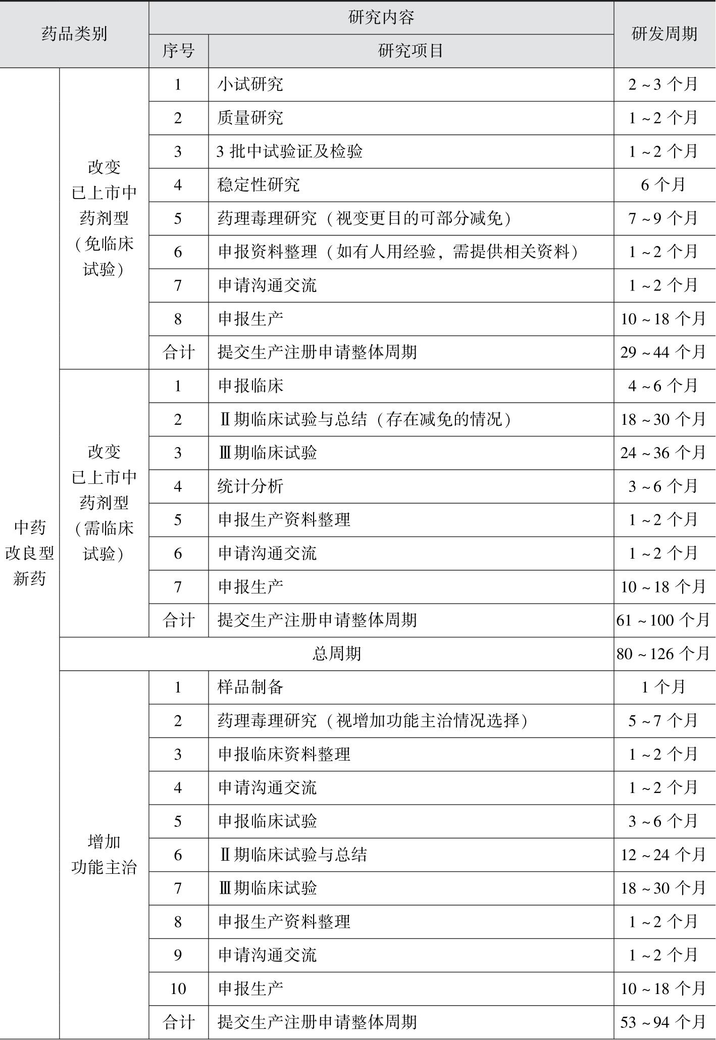2.药学研究周期基于一个项目组3~5人测算,与中药新药类别、药味及辅料数量、制剂难易程度等相关;