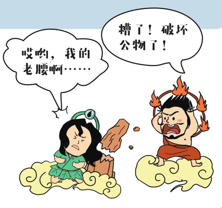 传说上古时期,水神共工和火神祝融打了起来,共工被祝融打败,他一气之下把不周山撞坏了。不周山是支撑天的柱子,柱子一断,天就不稳了,地也开始开裂,天河之水注入人间。