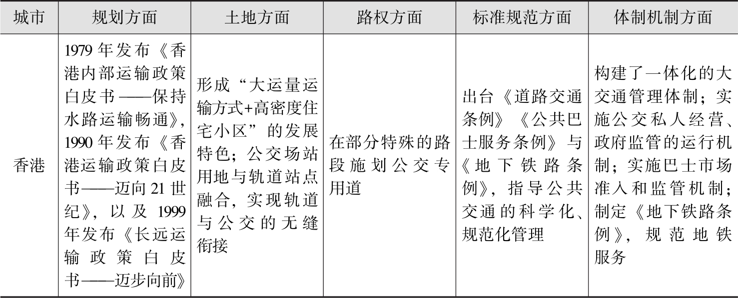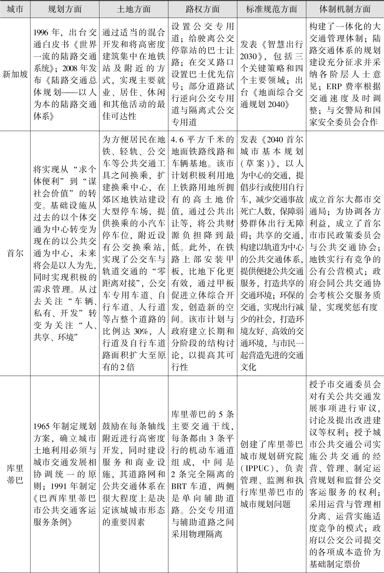 表3-4 国内外城市优先发展公共交通政策措施成功案例