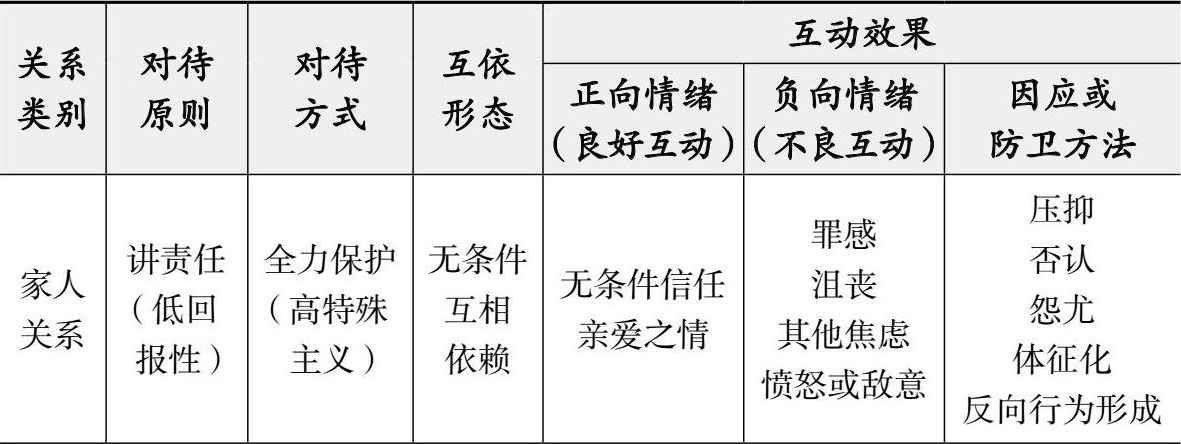 表2-3 四种社会关系中的不同人际对待原则、对待方式、互依形态及互动效果
