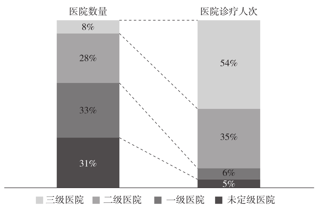 一直以来,医疗资源倒挂是中国医疗体系急需解决的问题:仅占总数8%的三级医院承担了来自全国50%以上的医疗需求,而多数基层医疗资源却长久沉睡、无法调动。互联网医疗被认为是解决这一问题的重要途径之一(见图2-2)。