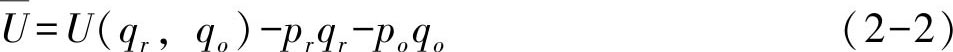 其中 表示两个渠道是对称的。类似地, 表明在市场潜在需求上 r 渠道强于 o 渠道。此处,本书假设 a r = a o = a =1,即两个渠道的潜在需求相等 [28,45,46,184-186] 。则需求函数可表示为: