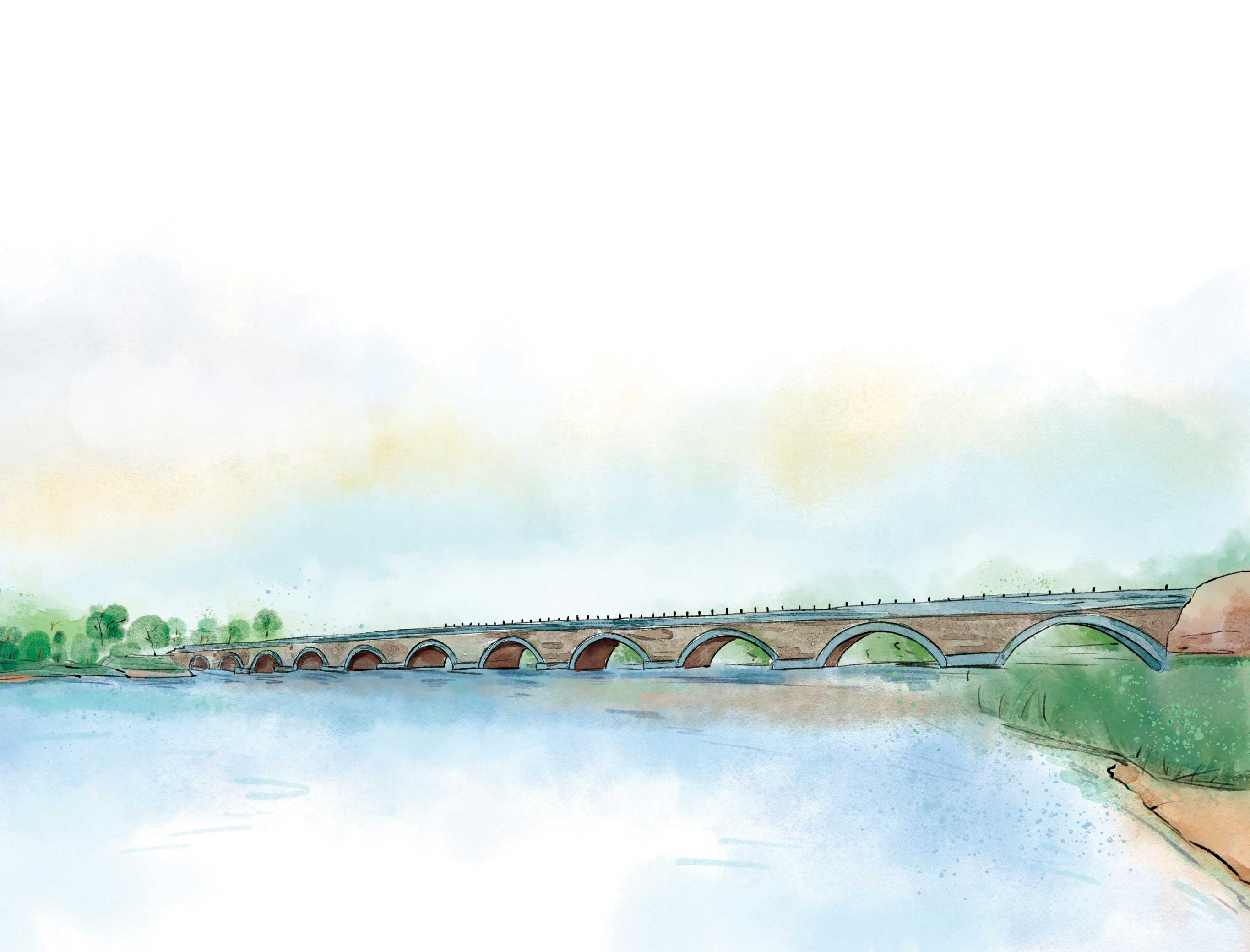 卢沟桥位于北京市丰台区永定河上,因为永定河在当时叫卢沟河,所以这座横跨卢沟河的桥叫卢沟桥。卢沟桥是由金代的工匠修建的,距今已经有八百多年了,它是北京现存最古老的联拱石桥,每两个石拱之间就有石砌的桥墩,所有的石拱连成一个整体,看上去既壮观又优美。