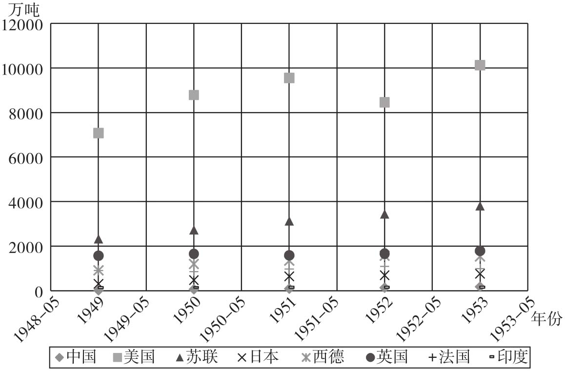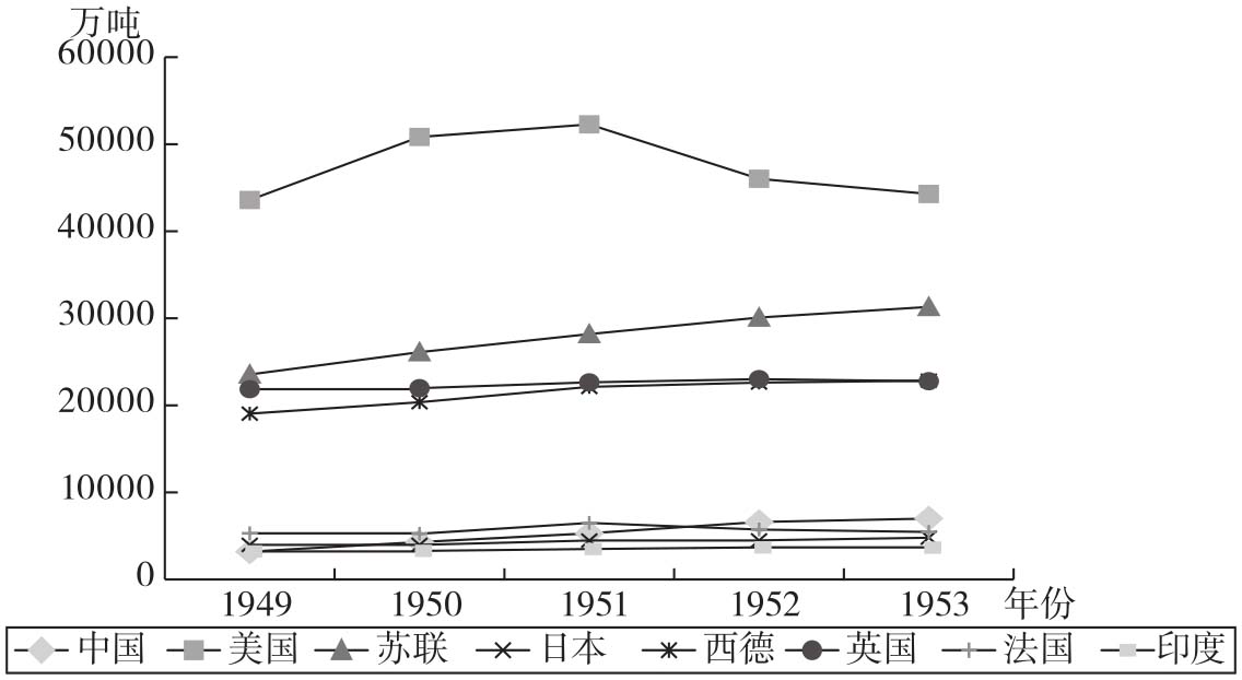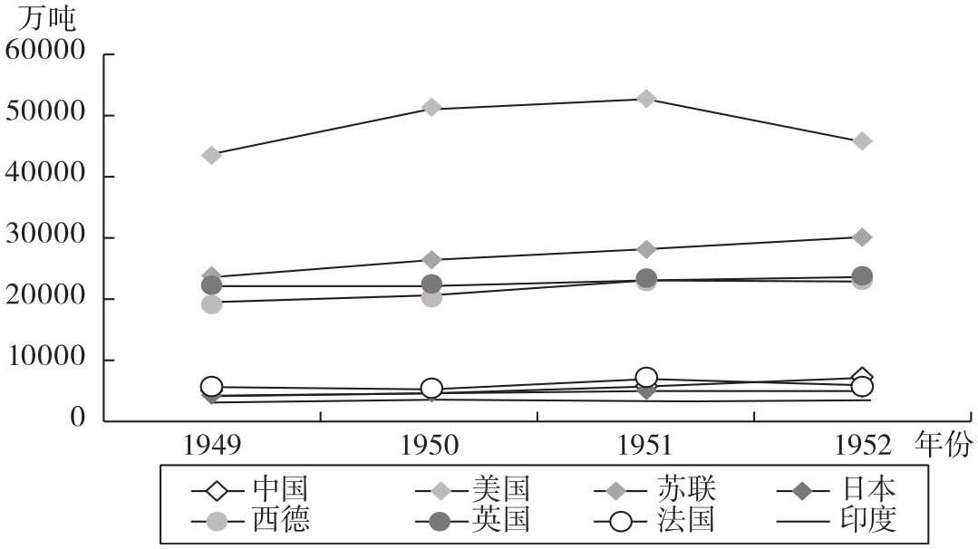 图3-5 1949—1953年中国和世界其他国家煤炭产量对比