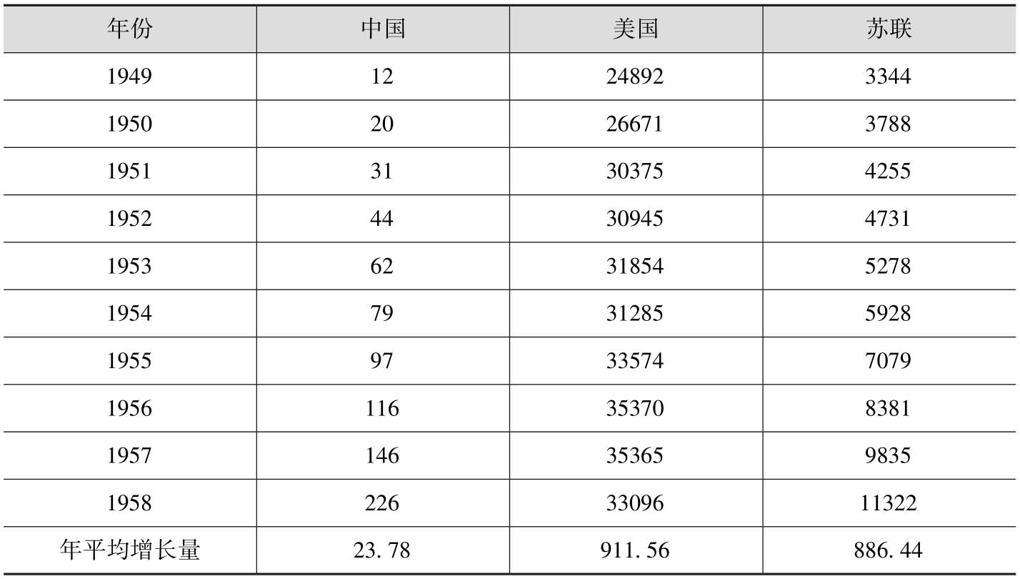表3-11 1949—1958年中国、美国、苏联原油产量情况 单位:万吨