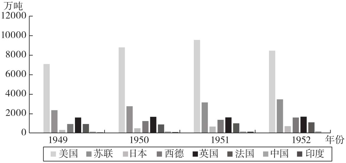图3-3 1949—1952年中国和世界其他国家煤炭产量对比