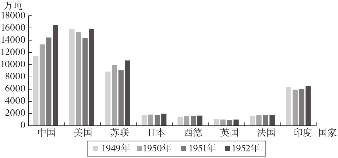 图3-1 1949—1952年中国和世界其他国家粮食产量对比