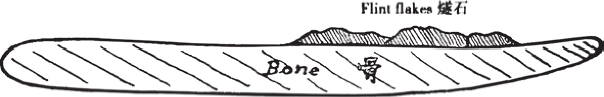 Andersson:Archaeological Research in Kansu.仰韶期之骨刀,其切口乃燧石薄片所嵌成(出土于西宁县周家寨,照原式缩小二分之一)