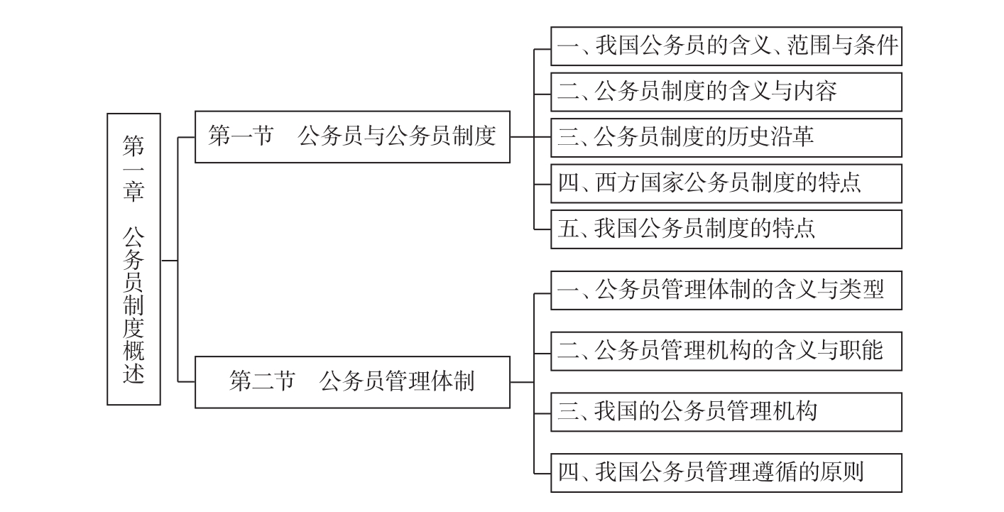 3.公务员管理体制:是指公务员管理权力的配置和划分、公务员管理机构的设置以及由此而构成的公务员管理系统。