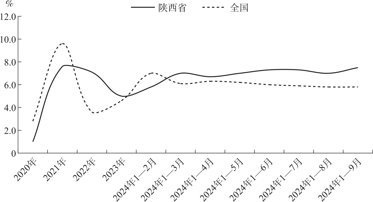 图1 陕西省和全国地区生产总值累计增速
