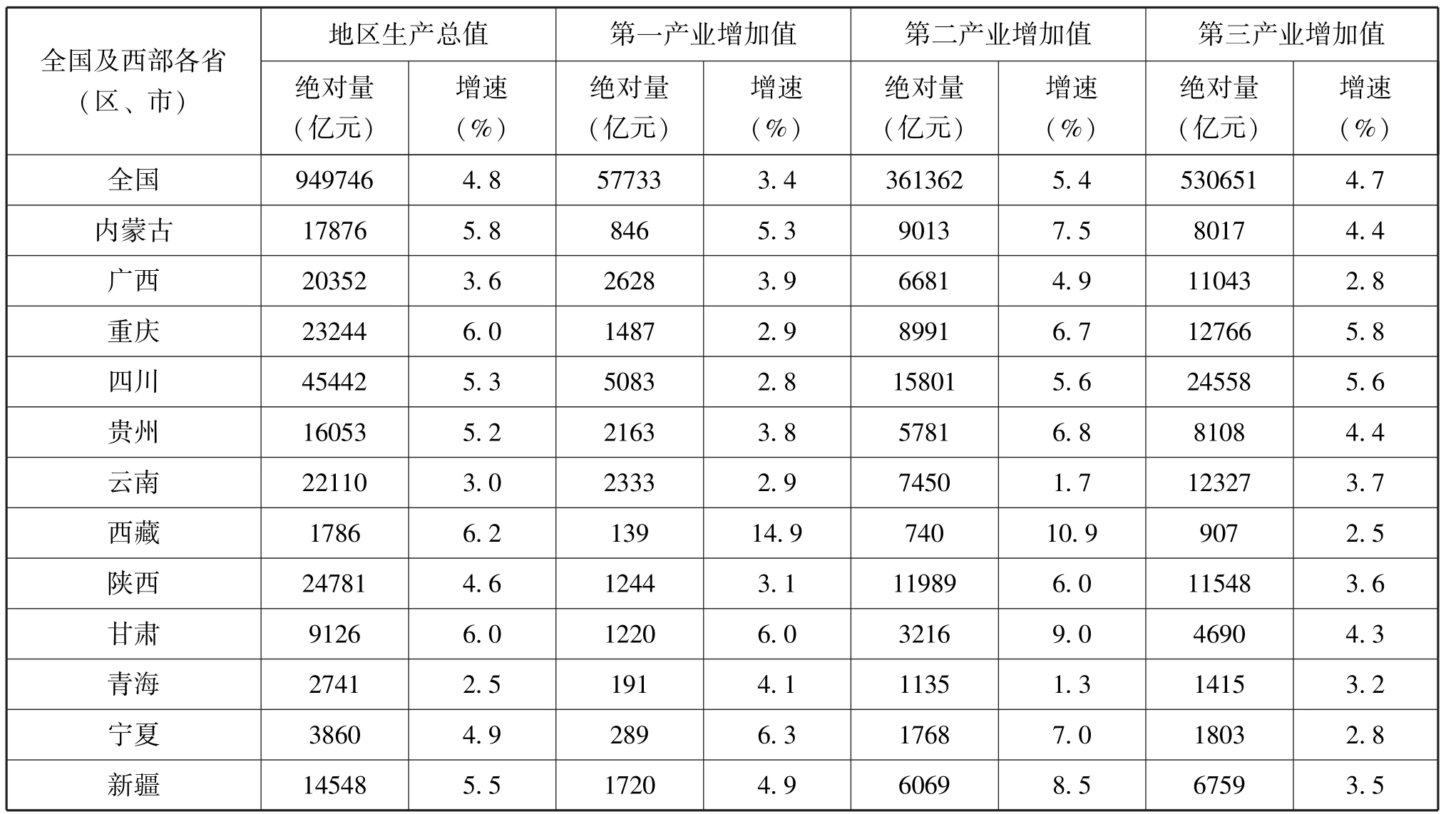 受国内外宏观环境影响,西部地区产业总体承压增长,工业生产呈恢复增长态势,农业和服务业增速比上年同期整体放缓,但部分省市产业运行态势好于全国平均水平。