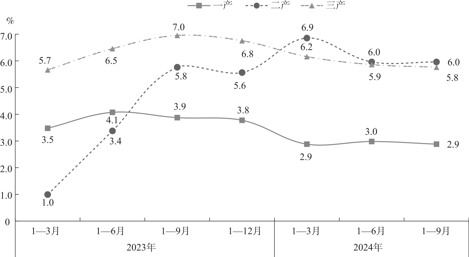 图2 2023年以来双城经济圈一二三产增加值季度累计增速