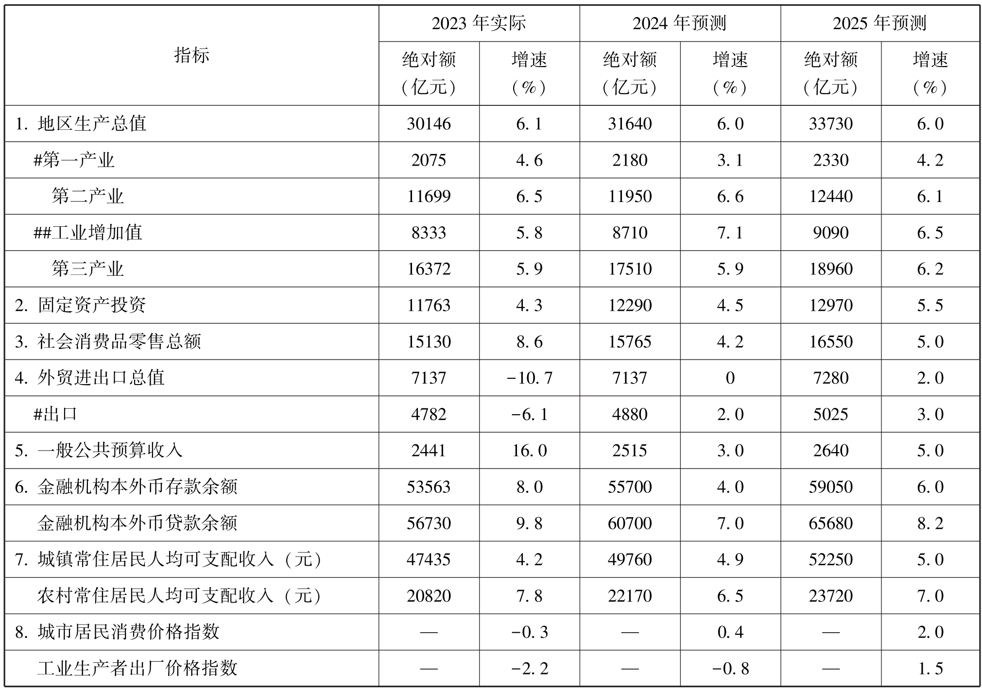 根据《重庆市宏观经济预警系统》和《重庆市宏观经济短期预测系统》,结合国内外形势及宏观政策背景综合分析,预计2025年GDP增速达到6.0%左右,全口径工业增加值、固定资产投资、社会消费品零售总额、外贸进出口分别同比增长6.5%、5.5%、5.0%、2.0%左右,居民消费价格指数同比增长2.0%左右。