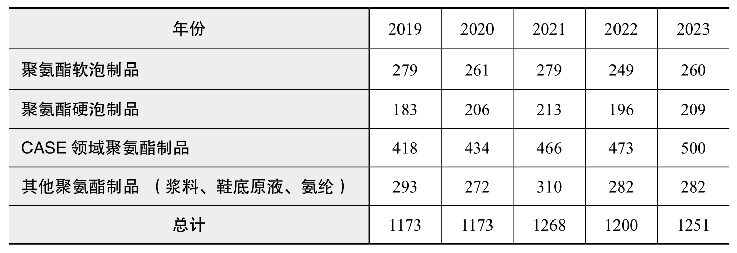 表4 2019-2023年我国聚氨酯制品消费概况 单位:万吨