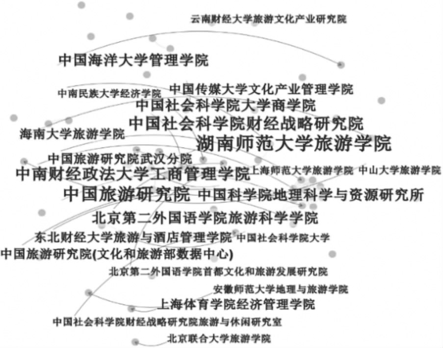 图1-6 旅游高质量发展的国内研究机构网络共现图谱