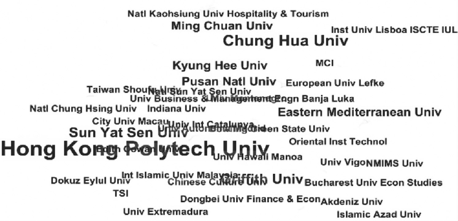 图1-2 旅游质量研究的国外研究机构网络共现图谱