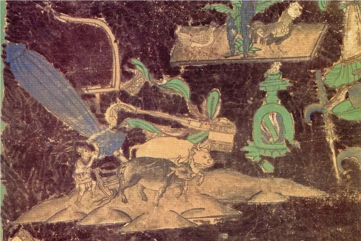 榆林窟第3窟东壁南侧五十一面千手观音变中的犁耕图(西夏)