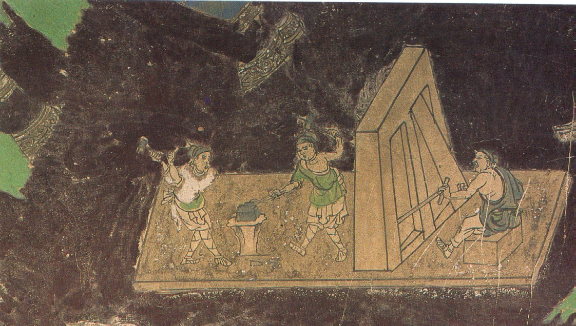 榆林窟第3窟东壁南侧五十一面千手千眼观音变中的锻铁图(西夏)
