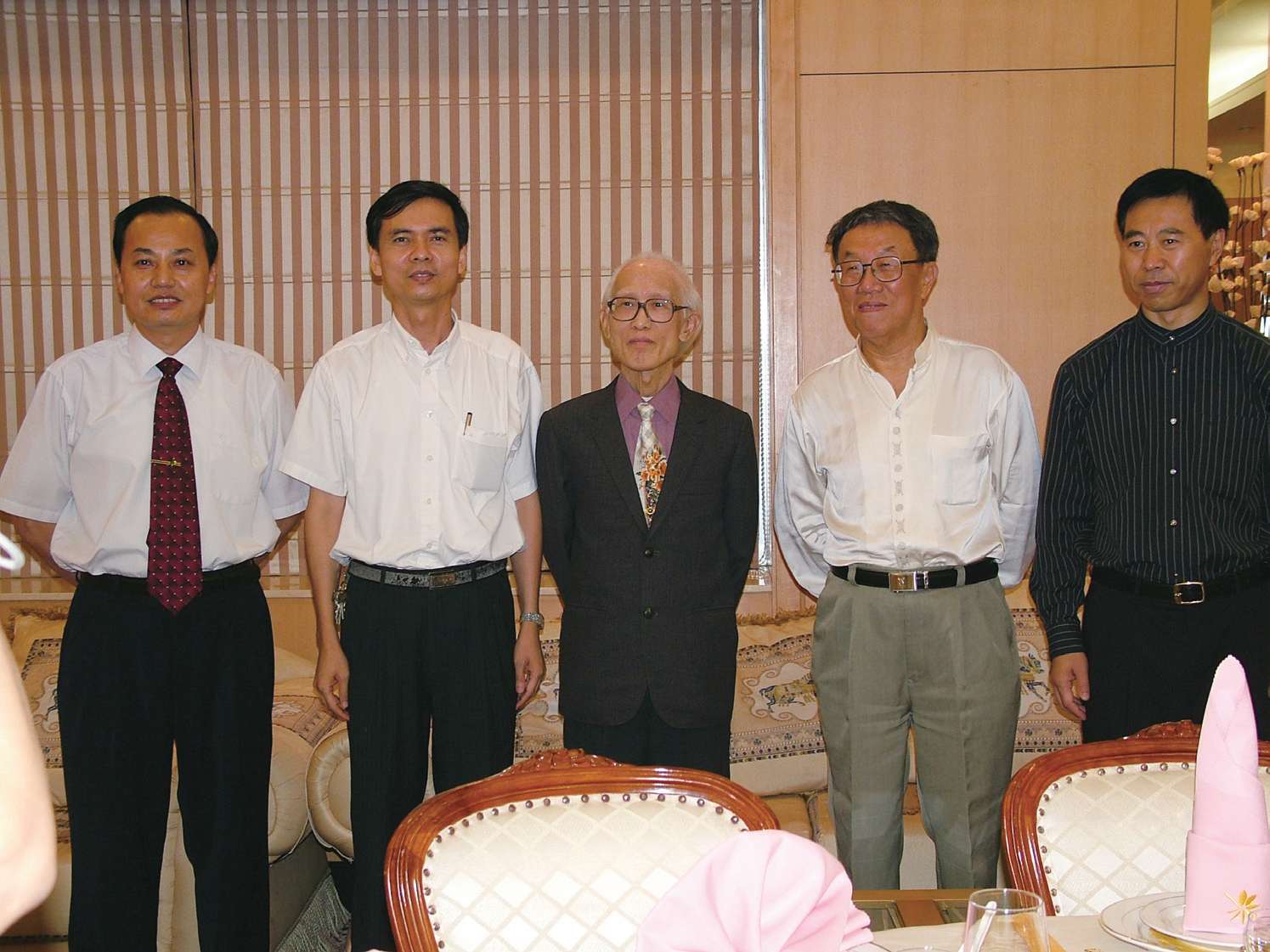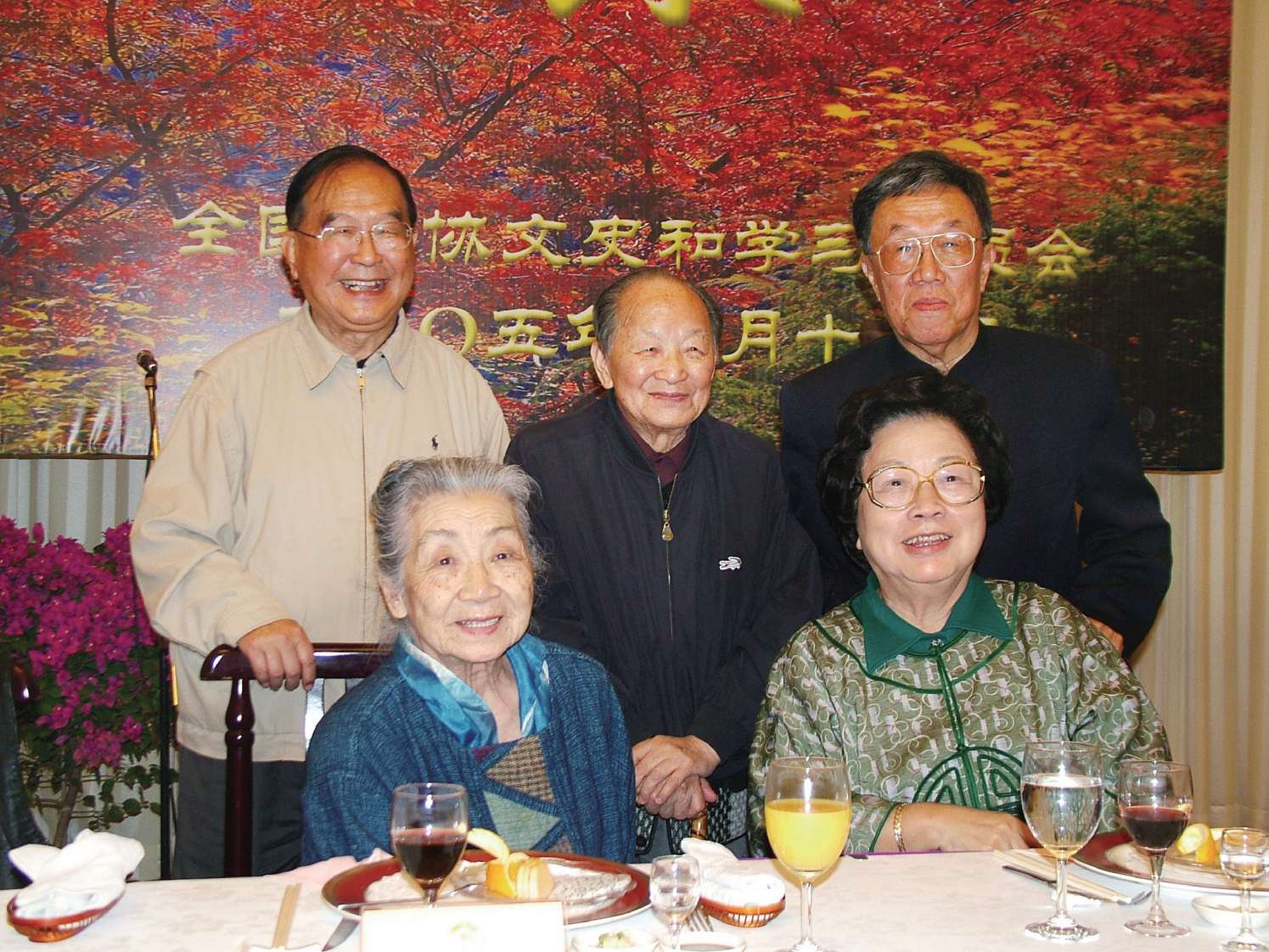 周巍峙、郁风、黄苗子、王昆、王蒙(从左往右)欢度重阳节。