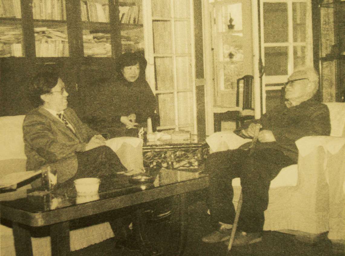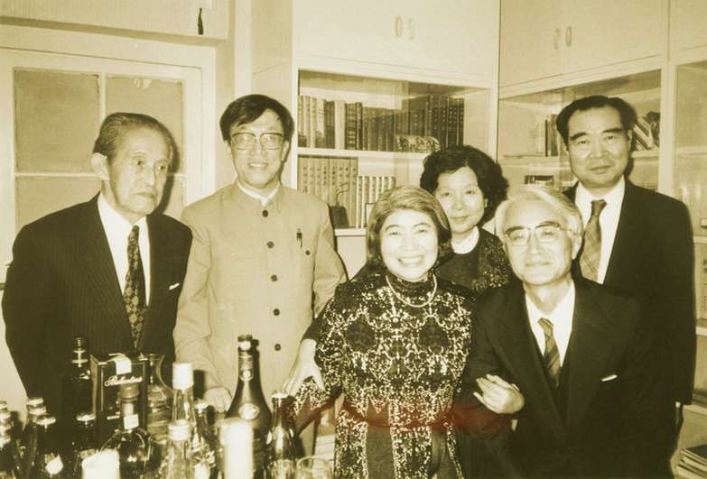 与日本作家井上靖(左一)等在北小街46号院家中。