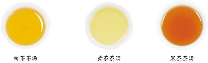 我国六大类茶在色泽上也有明显的区别。绿茶是不发酵茶,具有清汤绿叶的特点,汤色鲜灵清纯、莹亮清澈。红茶是全发酵茶,其干茶呈黑褐色,茶汤红艳明亮。红茶中的代表祁门红茶汤色红亮,云南“滇红”则汤色红浓。白茶属于微发酵茶,其干茶毫色银白,冲泡后,茶汤黄亮清澈,叶底嫩匀、叶片白色、叶脉翠绿。黄茶的特点是黄汤黄叶,汤色以黄汤明亮为好,暗黄或浊黄为次。乌龙茶属于半发酵茶,上品的乌龙茶干茶颜色或墨绿乌润或青绿油润,次等的乌龙茶干茶表面则呈乌褐色、褐色或橘红色;上品的乌龙茶茶汤呈金黄色或橙黄色,且清澈明亮,而质量次的乌龙茶汤色浑浊、红暗。黑茶属于后发酵茶,优质的黑茶茶汤明亮清澈,茶汤中没有悬浮的絮状物等杂质,茶叶叶底匀亮完整。