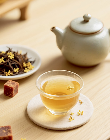 做法: 将桂花、红茶和红糖用开水冲泡,盖上杯盖,5分钟后即可饮用。