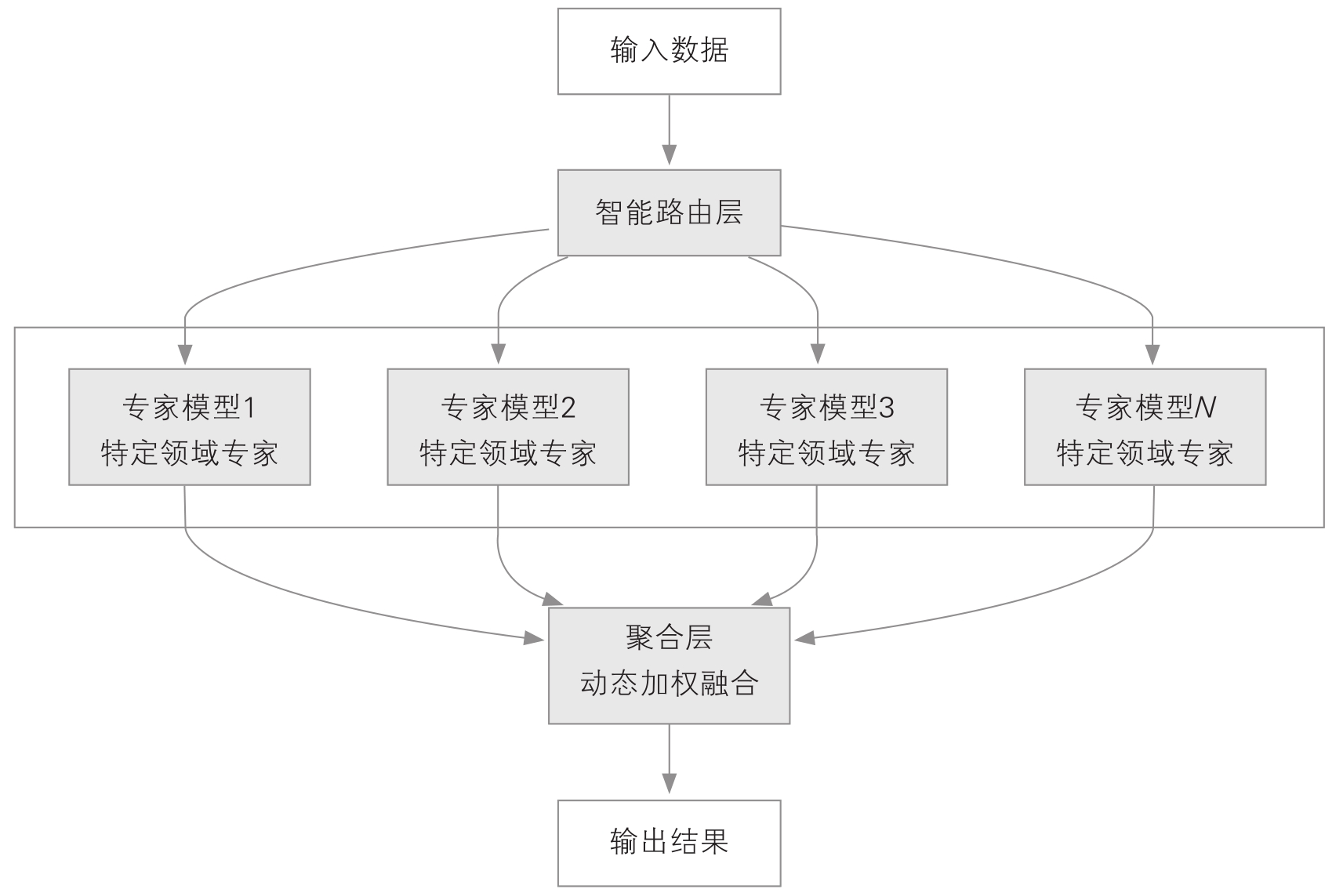 MoE架构借动态路由机制将输入数据分发至最合适的专家子网络进行处理。在处理文本和图像多模态任务时,模型依据数据特点自动选择擅长处理文本和图像的专家分别处理,再融合结果,从而提高处理效率和对不同模态数据的理解能力。MoE架构如图1-1所示。