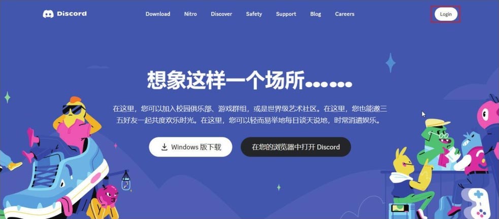 01 打开Discord官网,单击右上角的“Login”(注册)按钮,如图2-1所示。