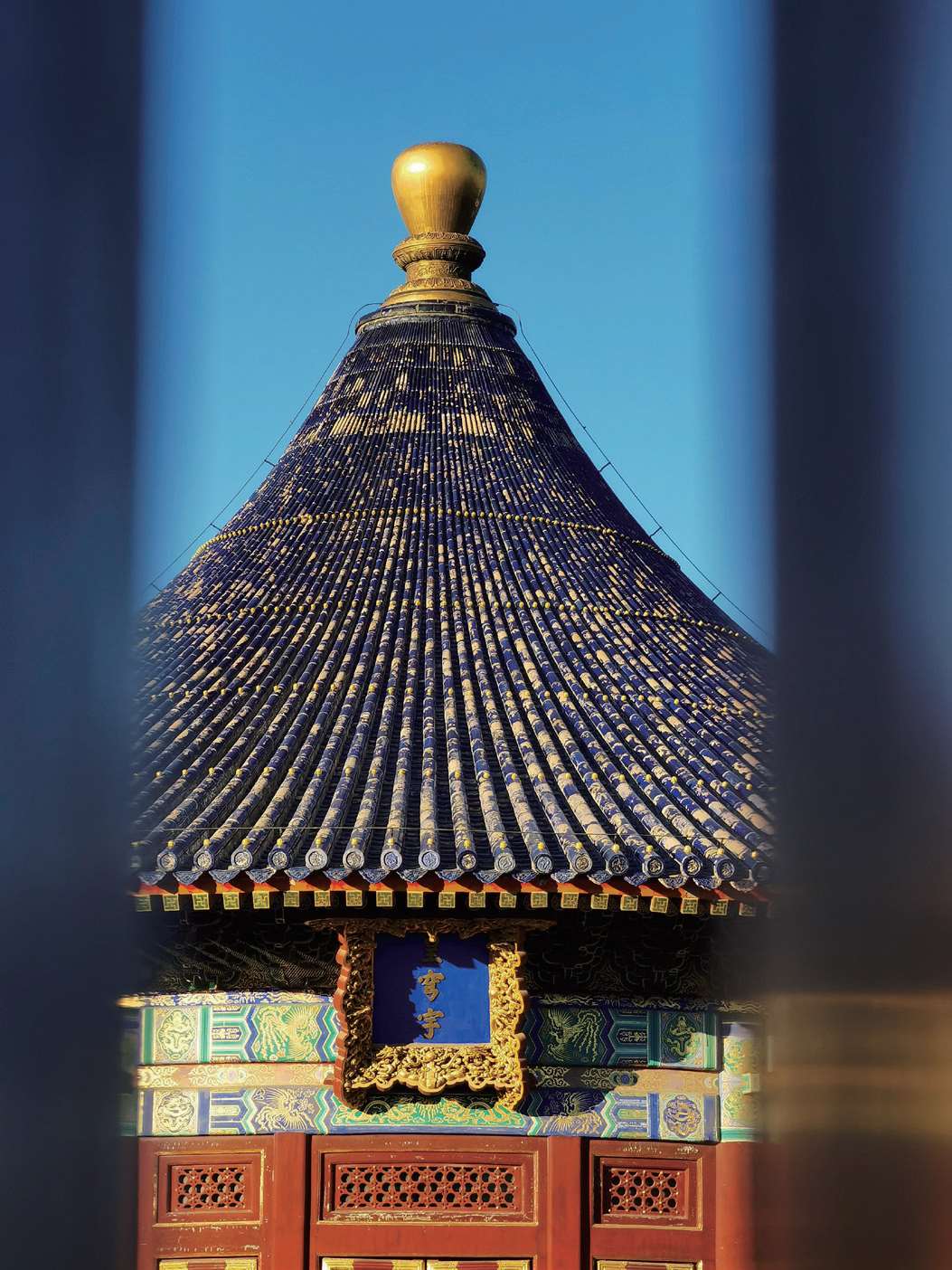 这张照片的构图则更加精妙,以两扇门中间的门缝为框,强调了中间的主体对象