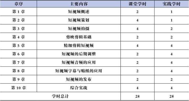 (3)强化技能,培养人才 。党的二十大报告指出:“实施科教兴国战略,强化现代化建设人才支撑。”本书不仅使用大量案例来讲解使用剪映进行短视频创作的基本理论和方法,还通过“实战案例指导”“实训”“思考与练习”等模块提高读者创作短视频的实操能力,力求培养既懂理论又善于实践的复合型人才。