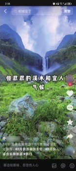 旅拍Vlog类短视频是以旅行中的见闻等为主,记录旅行中的沿途趣事及感受的短视频。这类短视频不仅能展现沿途美景,还能表达创作者的心情。其细分类型有很多,包括风景、美食、酒店等。旅拍Vlog类短视频满足了受众娱乐、悠闲、出游等需求,深受文艺青年喜爱并被广泛传播。旅拍Vlog类短视频案例如图1-8和图1-9所示。