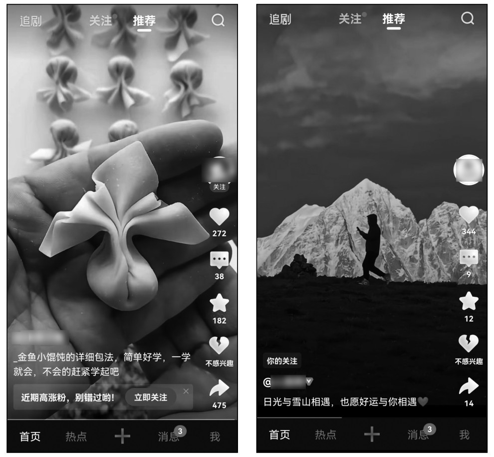 快手是一款以分享短视频和直播为主的社交平台。通过短视频和直播功能,快手为用户提供了广阔的内容创作和交流空间。在快手平台上,用户可以分享自己的生活点滴、展示才艺、发表观点等。同时,快手也在不断探索短视频和直播在各个领域的应用,如电商、乡村振兴、文化推广等。快手短视频界面如图1-7所示,快手电商直播界面如图1-8所示。