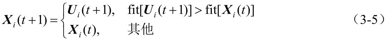 式中,fit[ U i ( t +1)]为 U i ( t +1)的适应度函数值;fit[ X i ( t )]为 X i ( t )的适应度函数值。