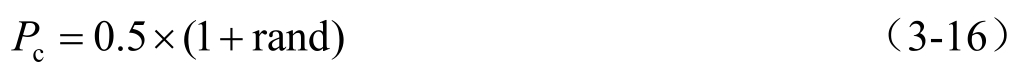 在交叉操作中,交叉概率也可设计成动态变化的。例如,随着进化代数的增加,交叉概率由小变大,将动态交叉概率设计成如下形式: