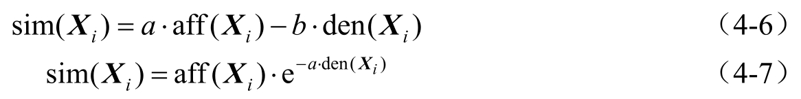 式中,sim( X i )为抗体 X i 的激励度;aff( X i )为抗体 X i 的亲和力;den( X i )为抗体 X i 的浓度; a 、 b 为实系数,可以根据实际情况确定。
