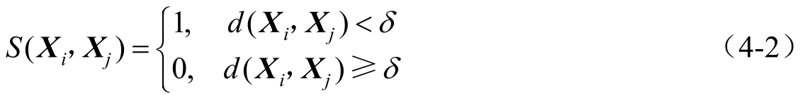式中, d ( X i , X j )为抗体 X i 与抗体 X j 之间的距离;δ为距离阈值。